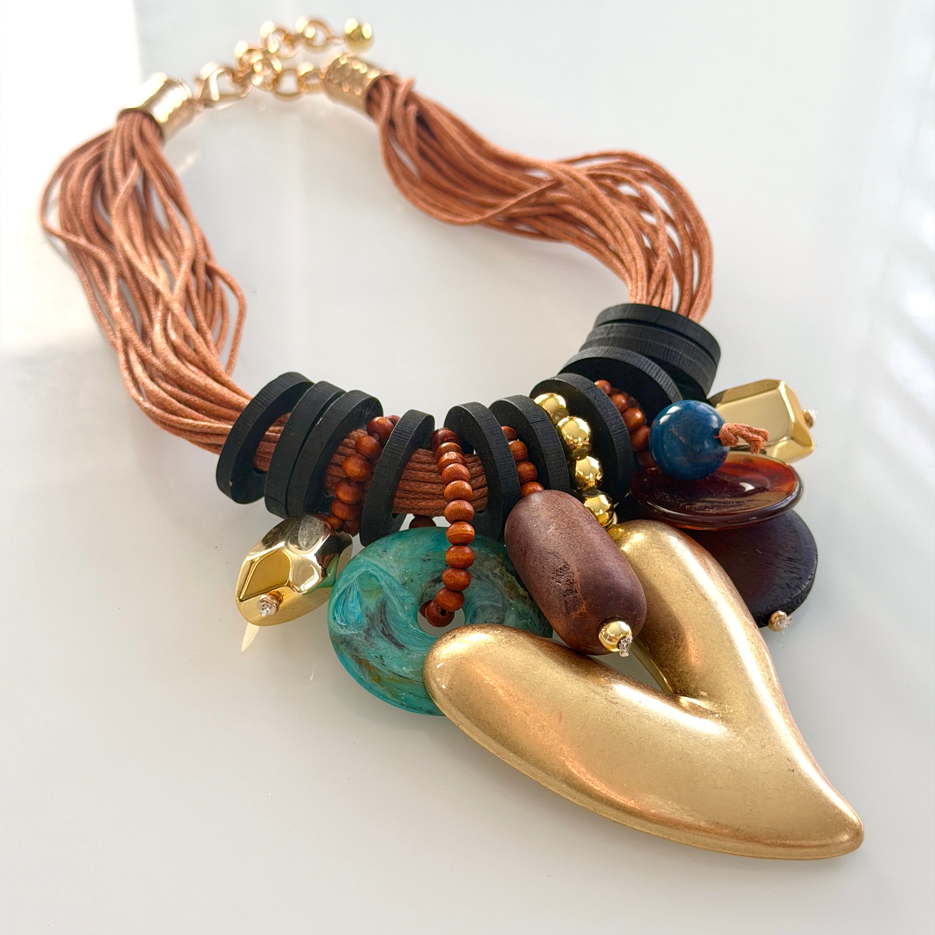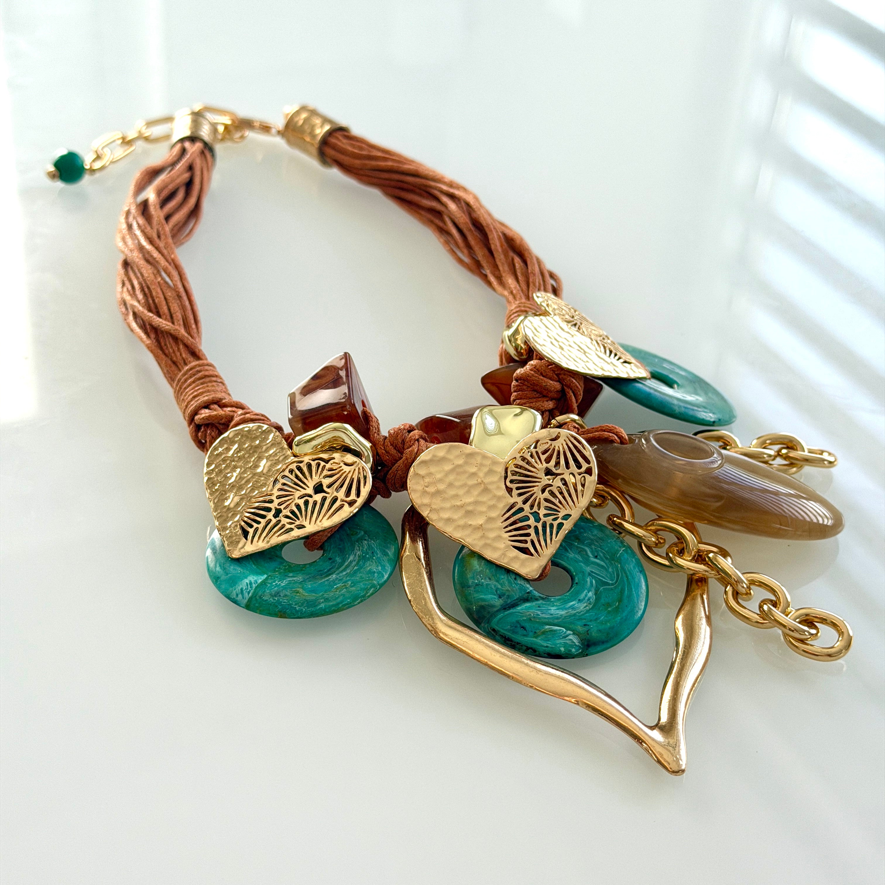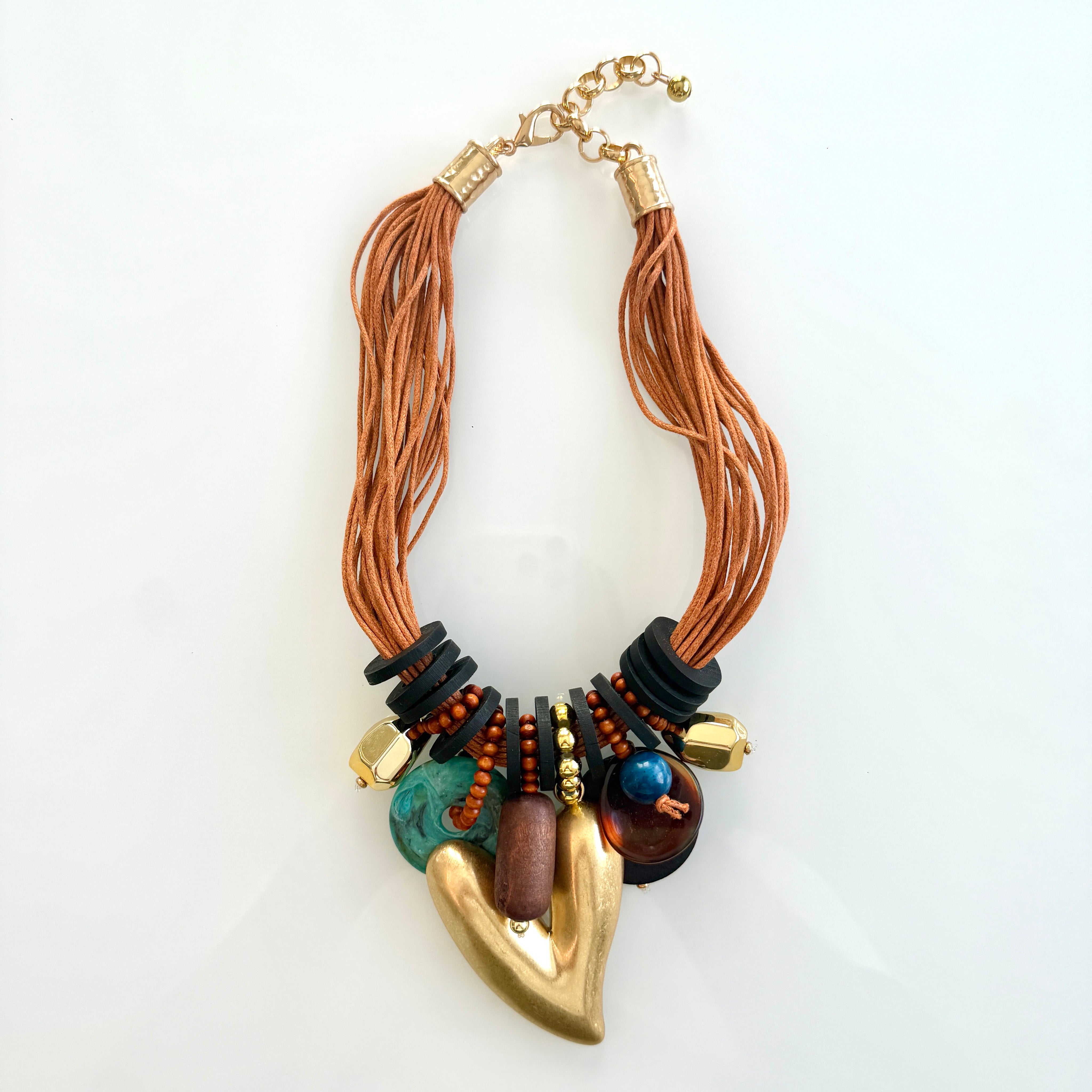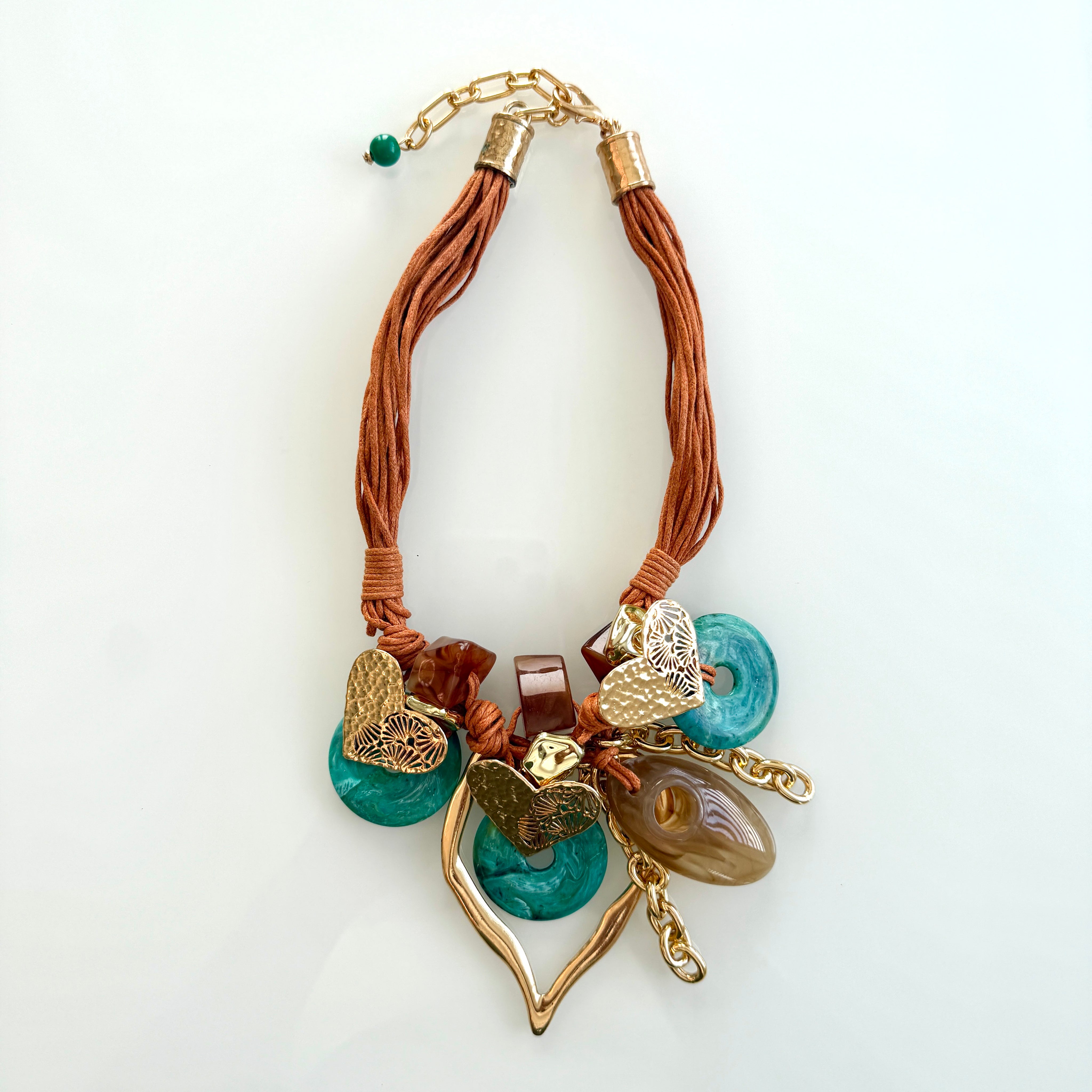 Statement Necklace featuring a Multi-Strand Suede Cord and Resin Accents, 20inch