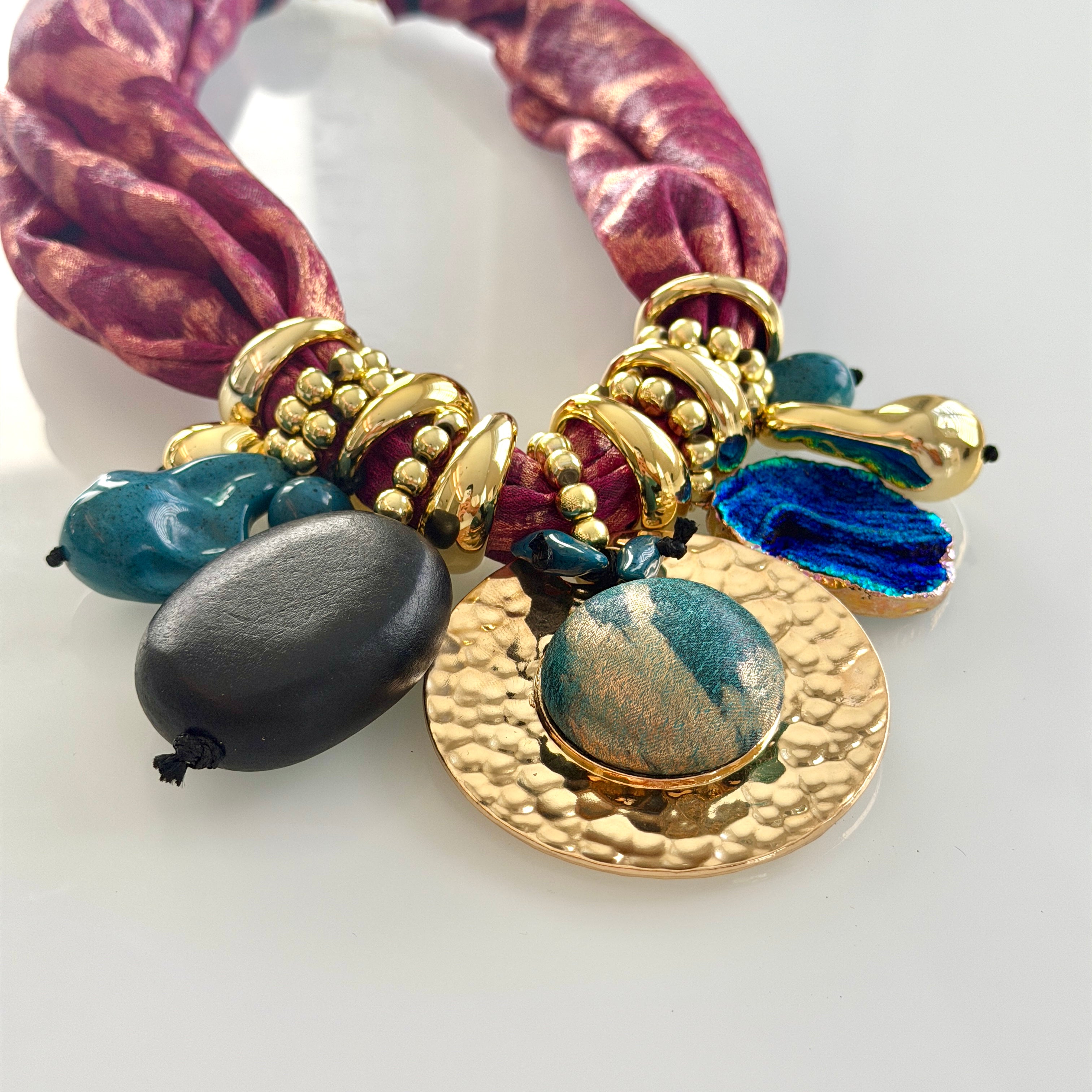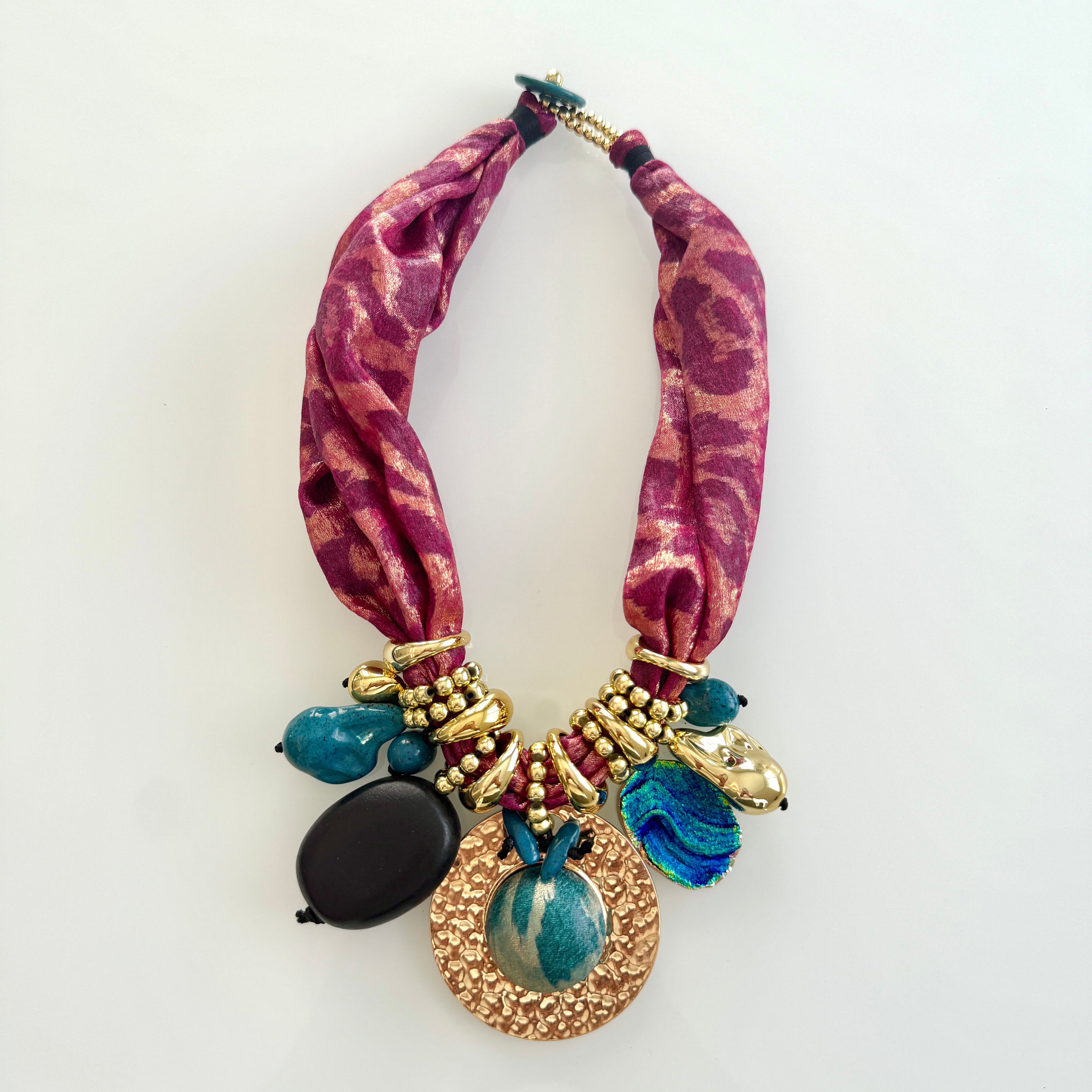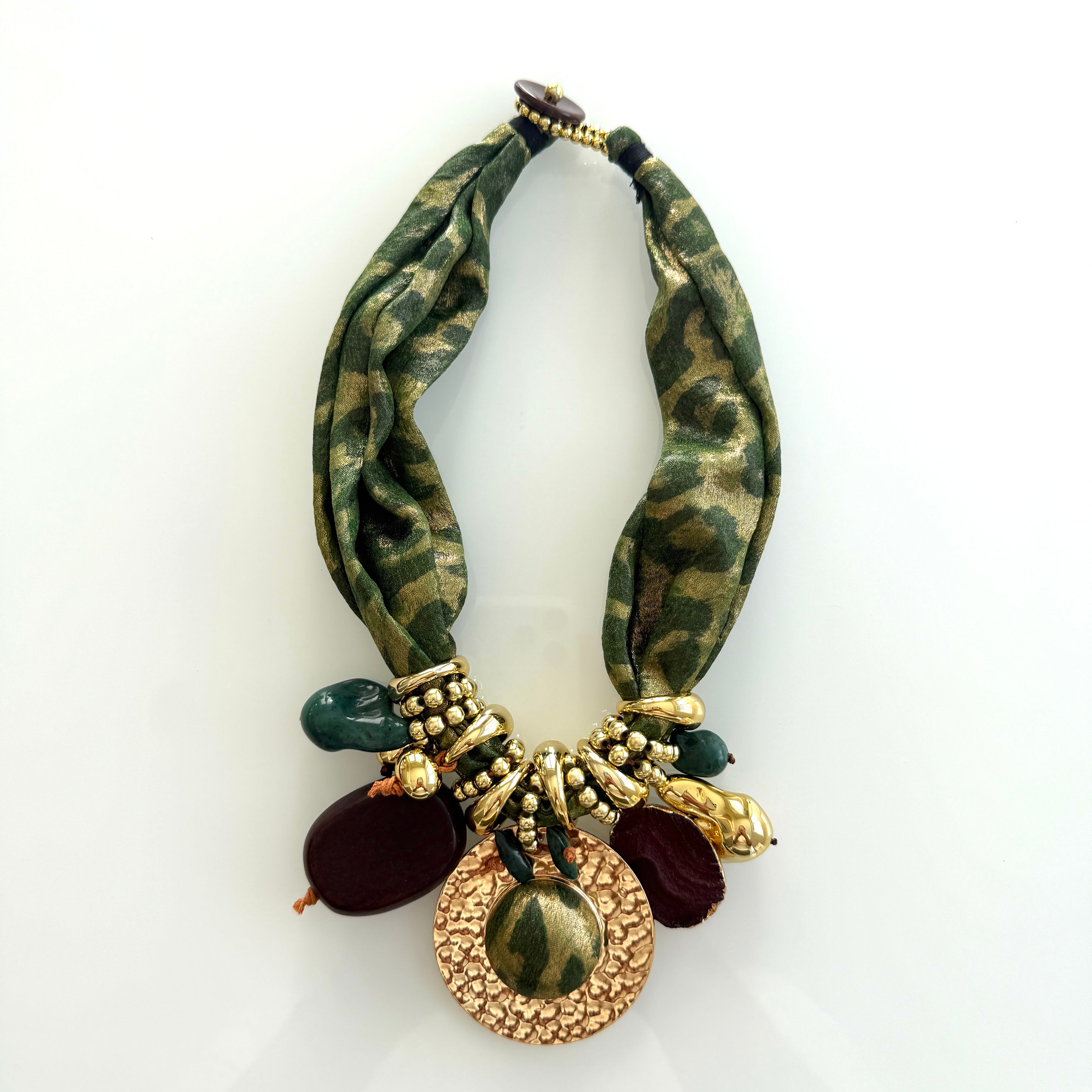 Statement Necklace Featuring a Soft Satin Animal Print Fabric Band, 20inch