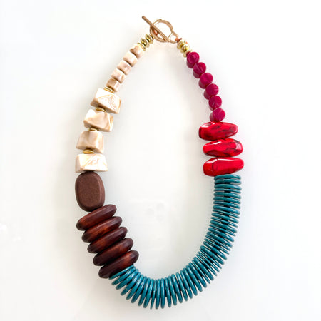 Statement Necklace featuring Multi-Shape Wood Beads, 20inch