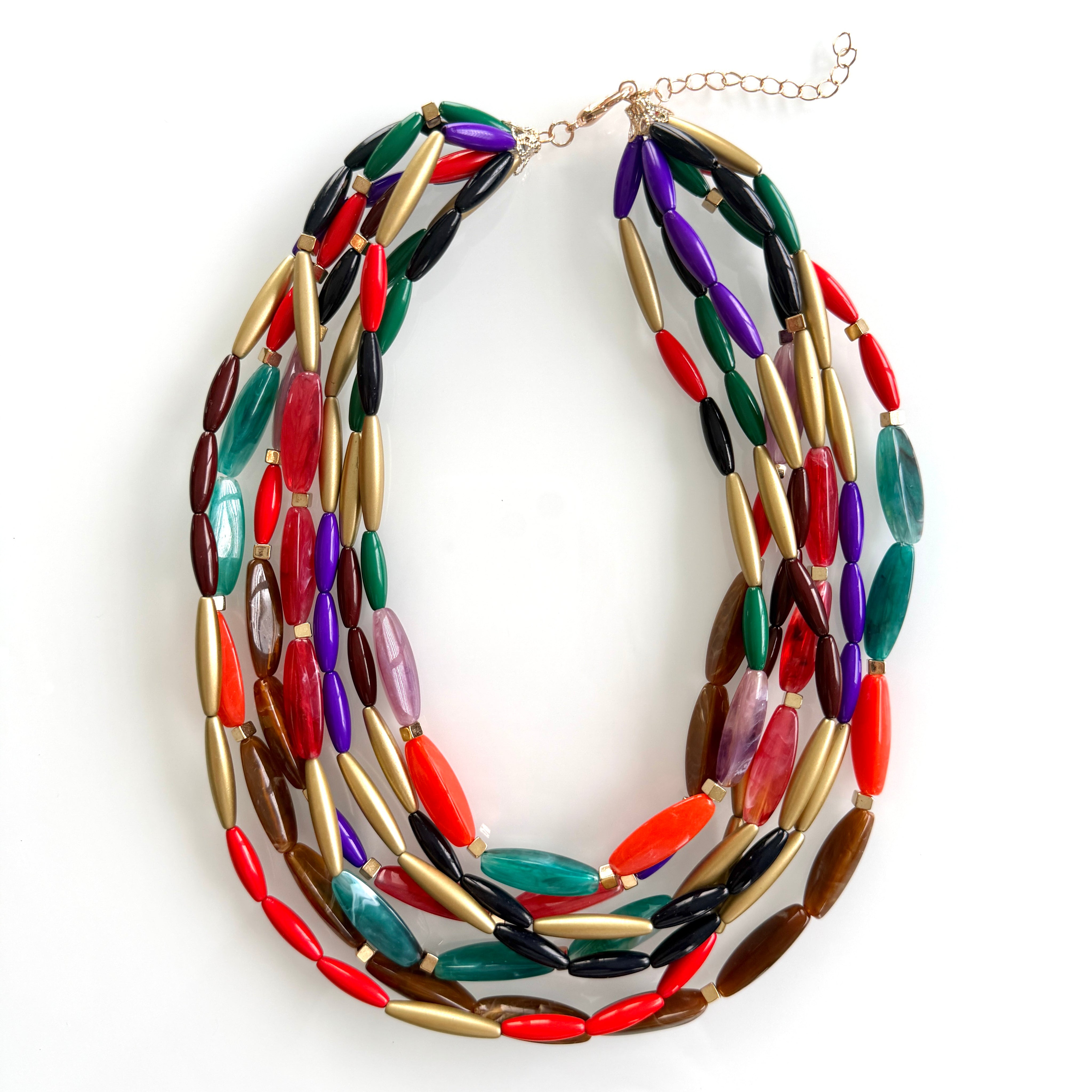 Statement Necklace featuring Multicolor Oval Thin Resin Beads and Earrings, 21inch