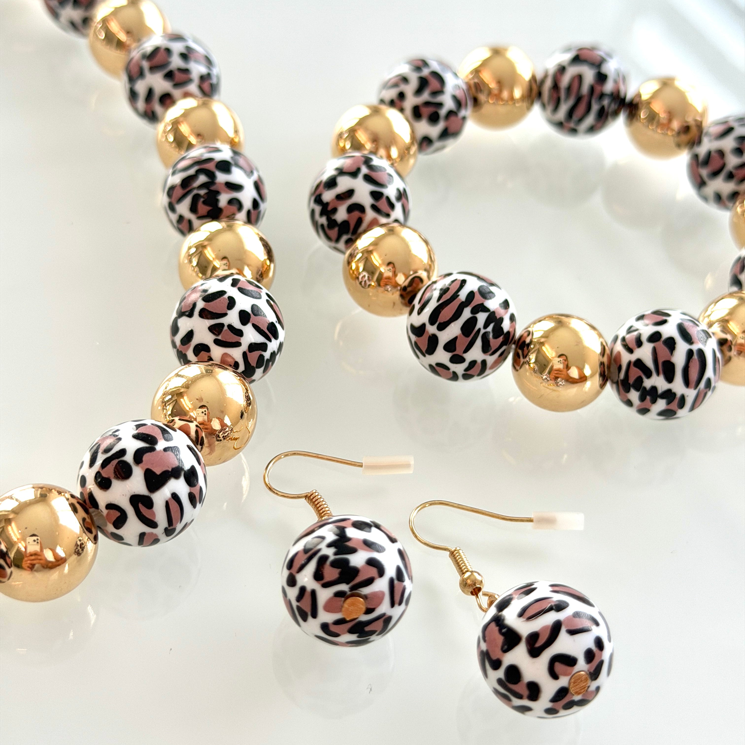 Statement Necklace Set featuring Animal Print Resin Beads and Gold Details, 21inch