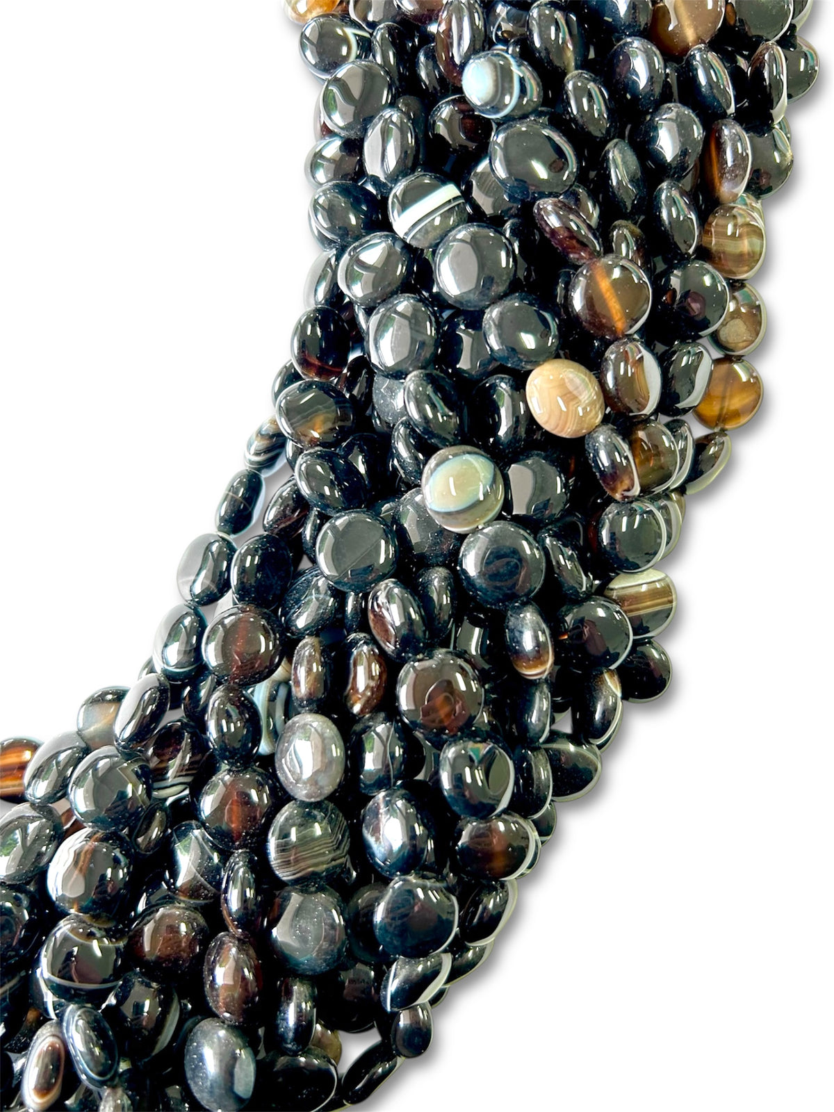 Increase quantity for Black Coin Magadascar Agate Bead Strand, 10mm