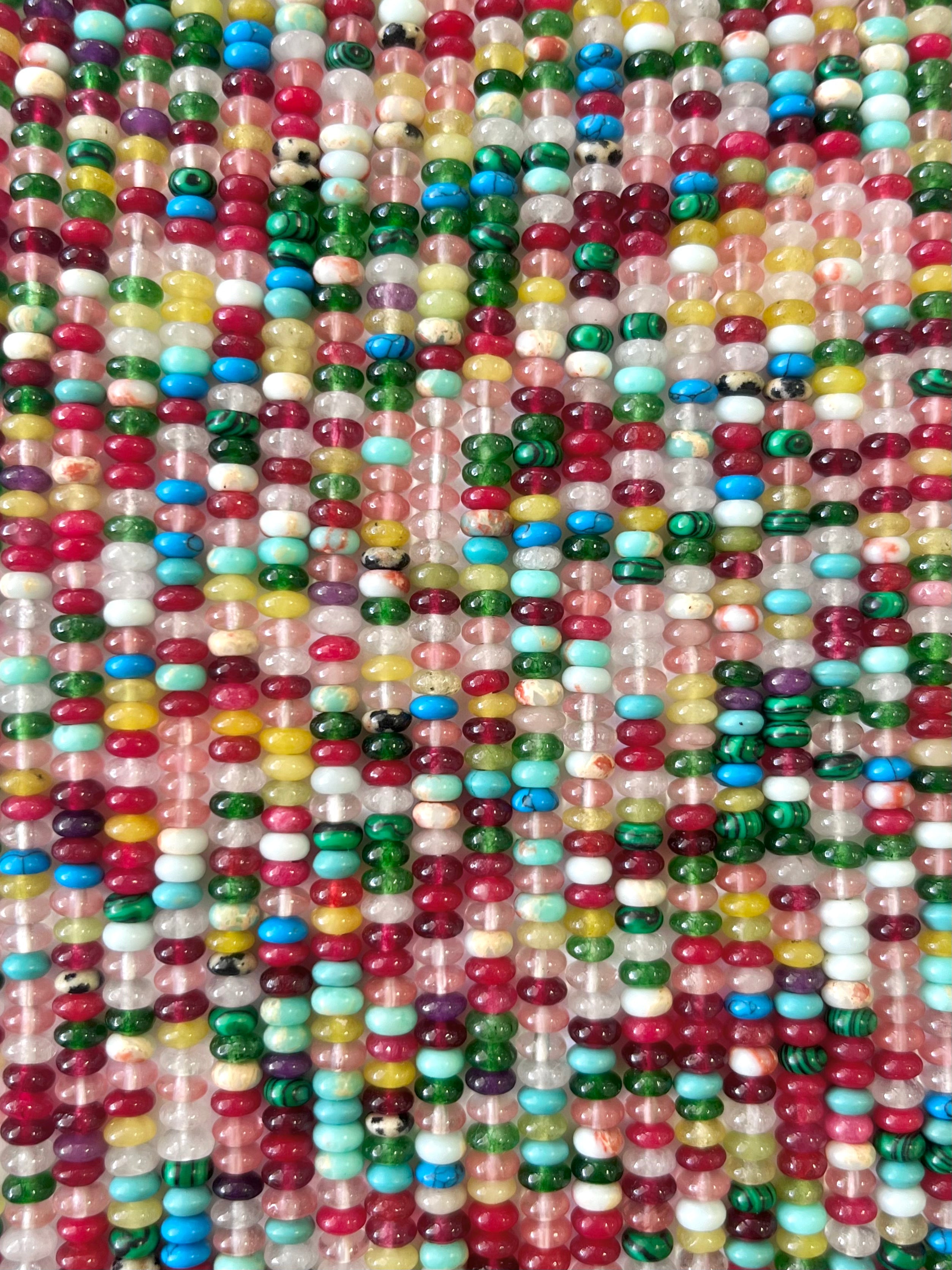 Multi-Gemstone Rondelle Bead Strand, 4mm