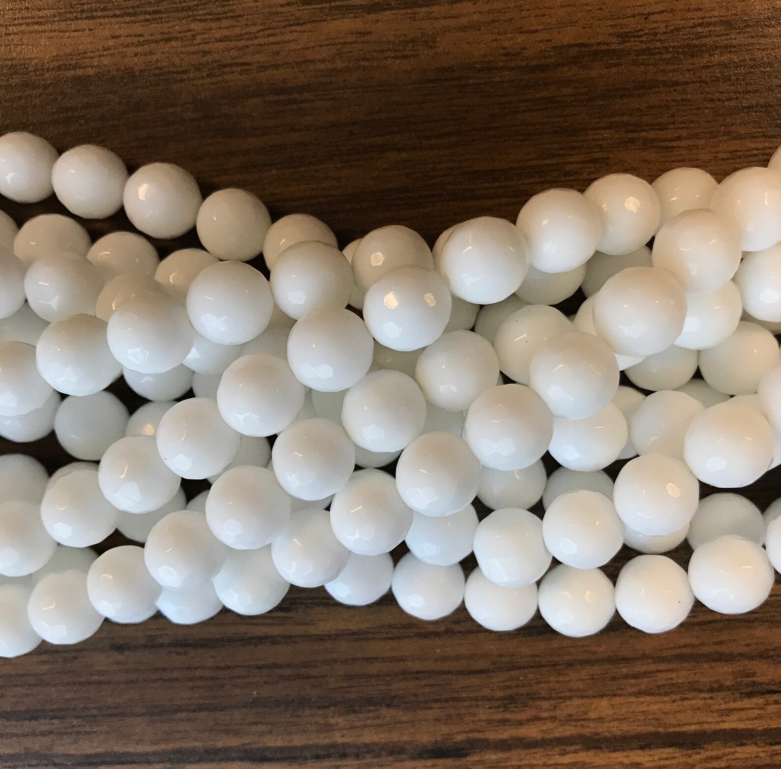 White Round Jade Bead Strand, 10mm